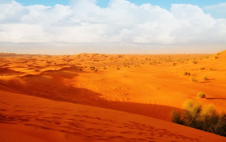 کشور امارات ، به طرز غیرمعمولی خشک است و تنها چند روز در سال باران می بارد. با وجود این اقلیم، در این کشور از آب به عنوان علامت هشدار استفاده می شود: برای مثال در این کشور چمن های فراوانی در معابر عمومی و اماکن تفریحی وجود دارد. قسمت عمده این آب، از نمک زدایی آب دریا حاصل می شود. گردشگران هیچ پولی به خاطر آب مصرفی، پرداخت نمی کنند. هوا از اواخر اکتبر تا اواسط مارس، نسبتاً مطبوع است و دمای هوا بین C27 تا C15 در نوسان است. تقریباً تمام سال، هوا آفتابی است. بین ماه های نوامبر تا فوریه ممکن است باران ببارد، و موقع بارش، جاده بسیار لغزنده می شود. در تابستان، دمای هوا بسیار بالا رفته و رطوبت آن نیز غیرقابل تحمل است این شایعه وجود دارد که دماهای رسمی که گزارش می شود، کمتر از دمای واقعی هواست که ممکن است به 50 درجه سانتی گراد و یا بالاتر هم برسد !